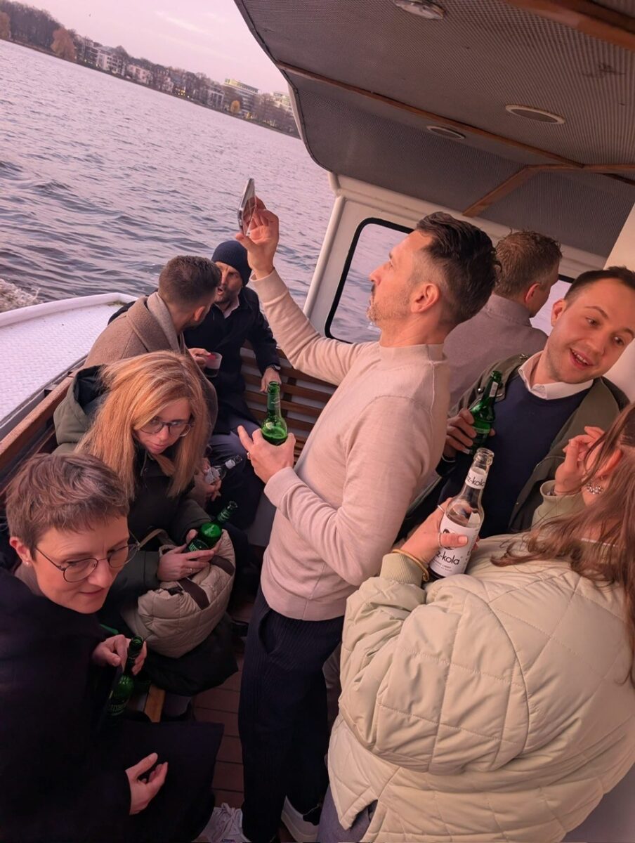 Mit einer Alsterrundfahrt, einem kurzen Stopp am Jungfernstieg samt Glühwein auf dem Weihnachtsmarkt und einem gemeinsamen Abendessen war der Rahmen perfekt, bevor wir den Abend entspannt an der Bar ausklingen ließen.